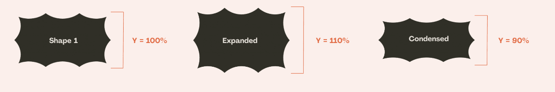Our shapes are flexible, and they can be stretched and condensed in different formats. However there are limitations to how much we stretch our shapes. Always start working with supplied shape versions, outlined above, to avoid extreme shape distortion.